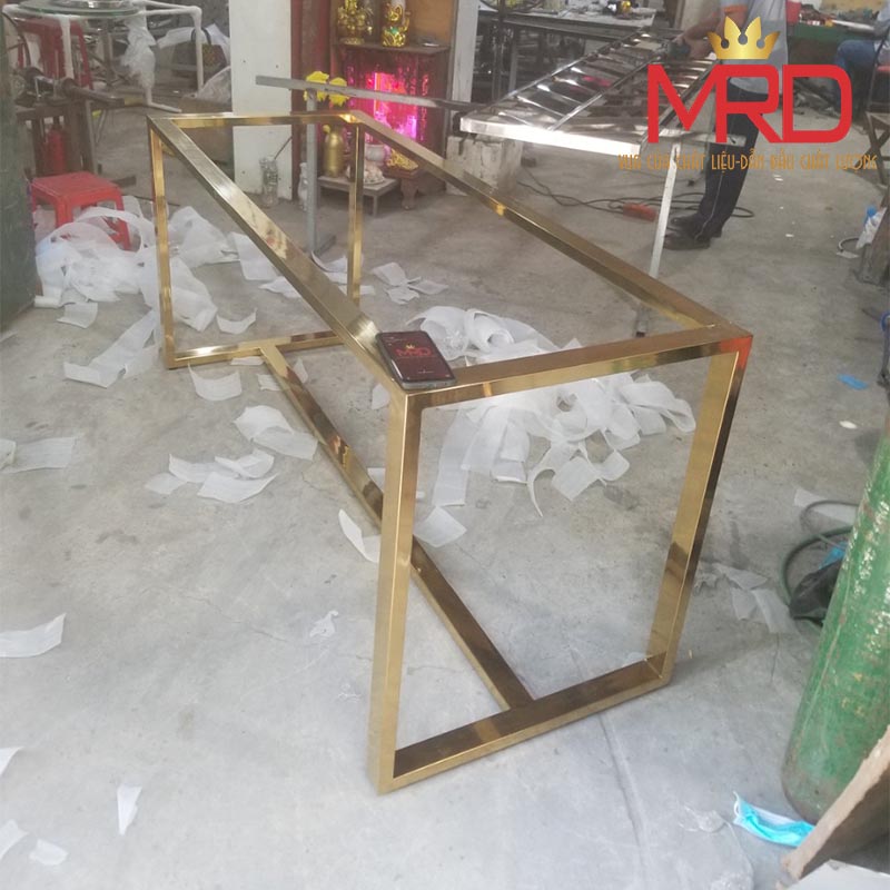 Khung chân bàn inox. Được thiết kế sản xuất sản xuất gia công bằng chất liệu inox 304 , cùng với độ chính xác, chất lượng inox cao cấp sang trọng, cùng với độ bền vượt trội cộng với độ thẩm mỹ cao theo yêu cầu trong trang trí nội thất. Gia công inox theo yêu cầu