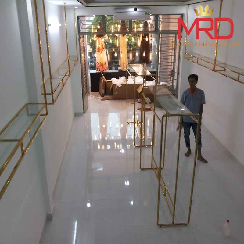 Thiết kế thi công hoàn thiện nội thất inox shop thời trang showroom, gia công giá sào kệ inox và kệ tủ trưng bày sản phẩm shop theo yêu cầu.