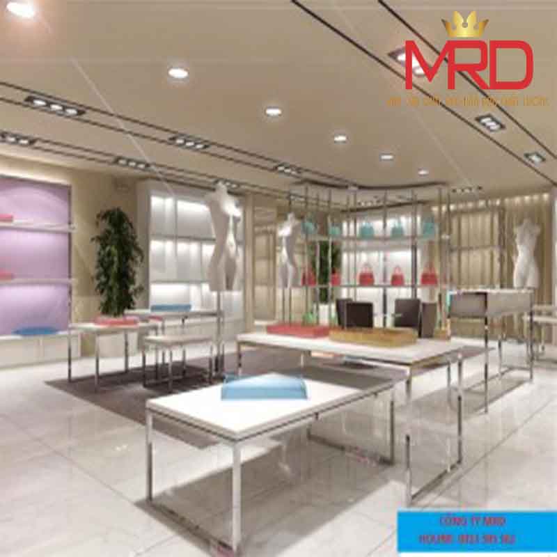 Thiết kế gia công nội thất shop thời trang showroom trong đó các sản phẩm nội thất shop hay còn gọi là tủ kệ trưng bày shop không thể thiếu trong shop showroom của bạn. như tủ kệ shop
