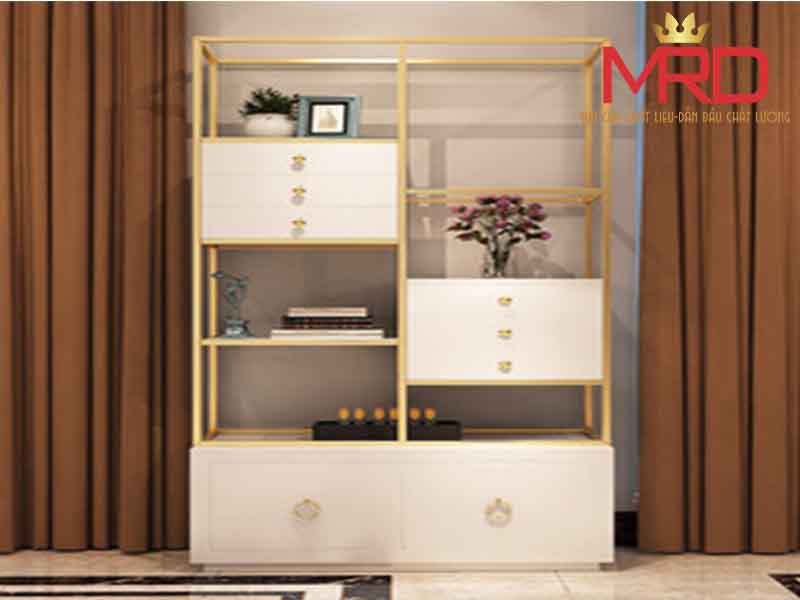 Kệ khung inox mạ vàng hay mau đen và tủ gỗ công nghiệp MDF được thiết kế với tông màu sáng hoặc tối để tạo ra sự sang trọng cho căn phòng của bạn. Bên cạnh đó có có mẫu kệ sách này tạo phong cách độc lạ, lịnh lãm thể hiện đẳng cách của bạn