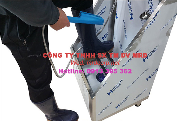 - Bàn chải vệ sinh có kết hợp với vòi phun nước bên trong Thông số kỹ thuật của bồn rửa ủng inox phòng sạch: