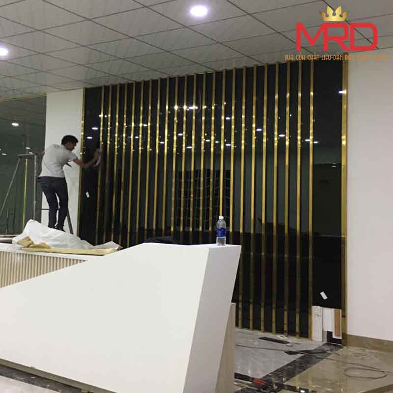 Thi công vách trang trí inox - Sau quầy lễ tân
